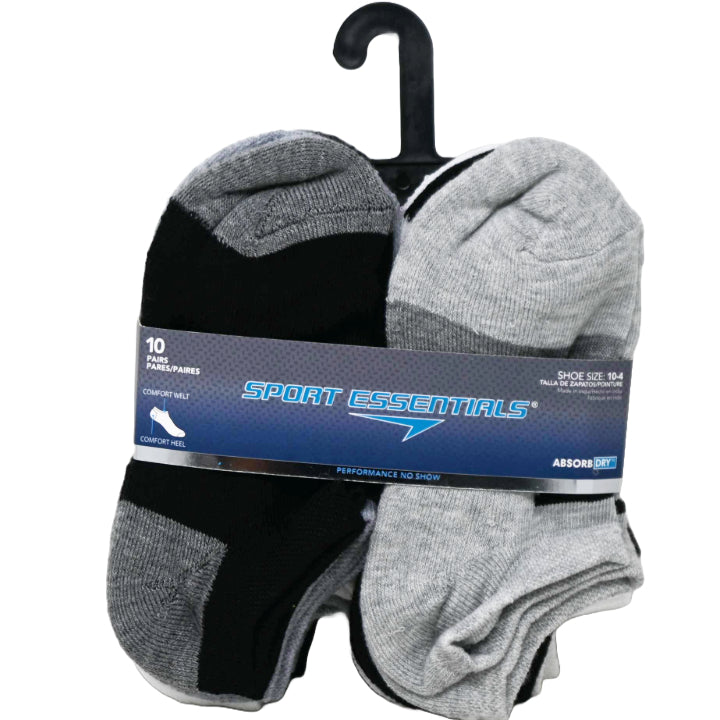 Wholesale 10pk KIDS SPORT ESSENTIALS DBL LOGO HC NS SOCKS SIZE 6-8