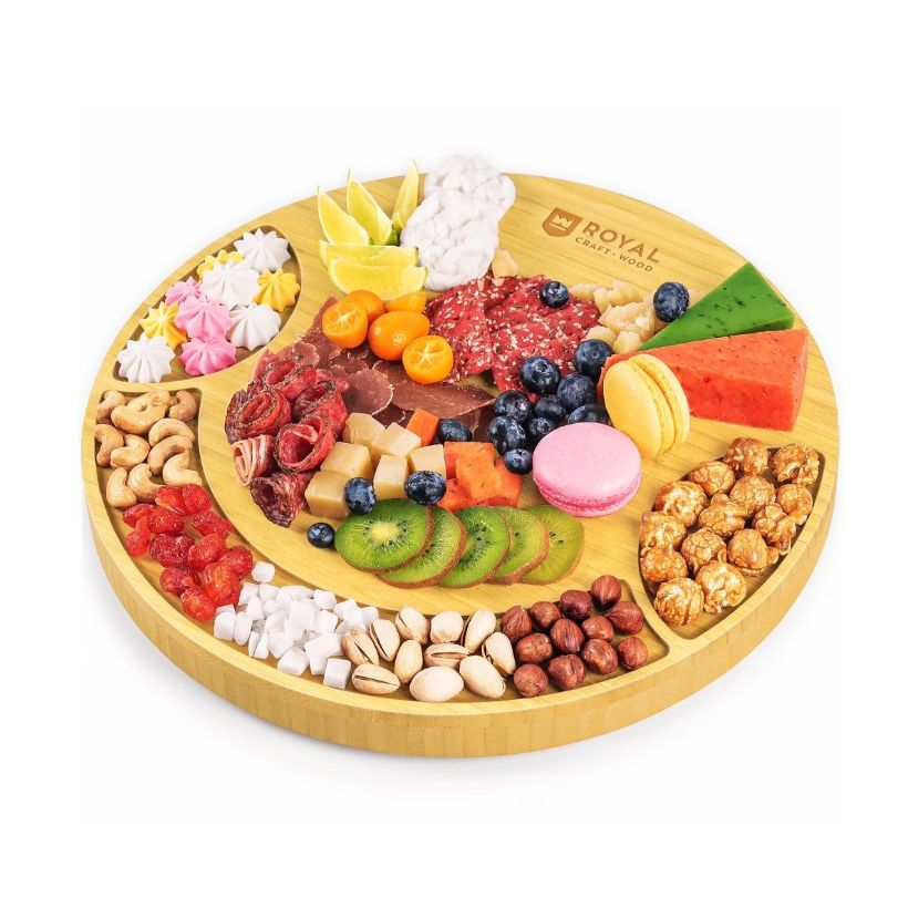 Wholesale 13.5" Rnd Bamboo Cheese Board w3pc Cutlery Set - Royal Craft Wood C/P 8