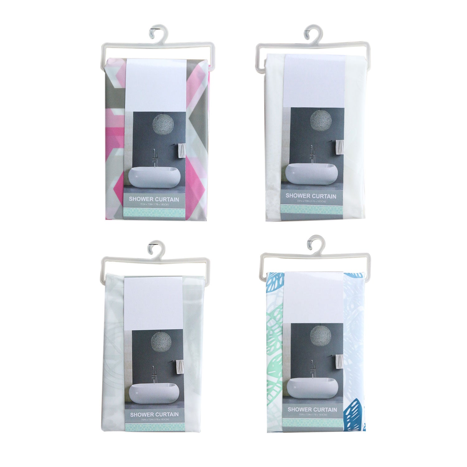 Wholesale 70" X 72" SHOWER CURTAIN WITH 12 PLASTIC HOOKS, 2 ASSORTED PRINTS, MATERIAL: 100% PEVA, CASE PACK: 24, UPC: 810002207174, MASTER UPC: 20717