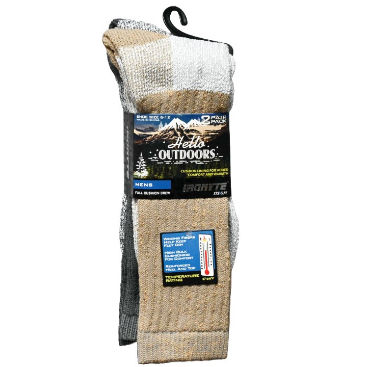 MENS 2PK FULL CUSHION THERMAL SIZE 6-12 KHAKI DARK GRAY C/P 48