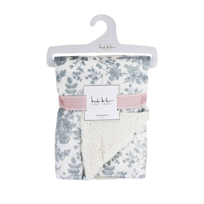 Wholesale Nicole Miller Grey and White Floral Printed Mink/Sherpa Throw C/P 30