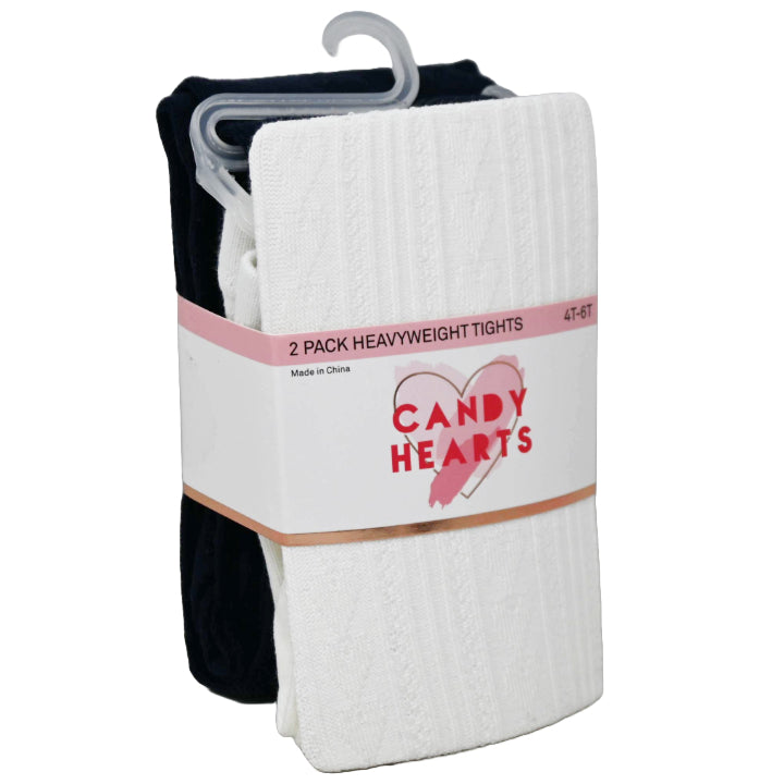 Wholesale 2pk GIRLS HEART CABLE & SOLID HWT FOOTED TIGHTS SIZE 4-6 C/P 24
