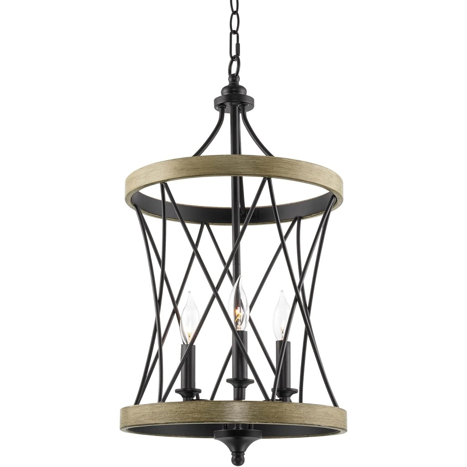 - Evie 25" 3-Light Modern Farmhouse Pendant Light, Smoked Birch Wood Style + Black Finish C/P 1