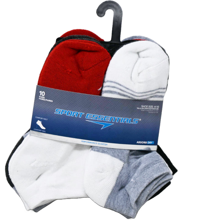 Wholesale 10pk KIDS WHT SPORT ESSENTIALS MULTI STRIPE HC QTR SOCKS SIZE 9-11