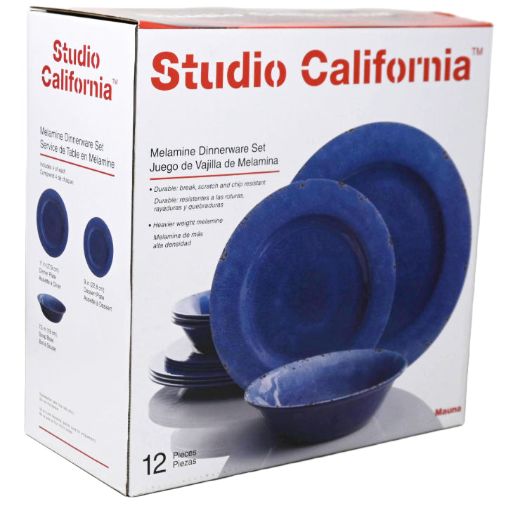 Wholesale 12pc LG MAUNA C. BLUE DECORATED MELAMINE DINNERWARE SET C/P 1