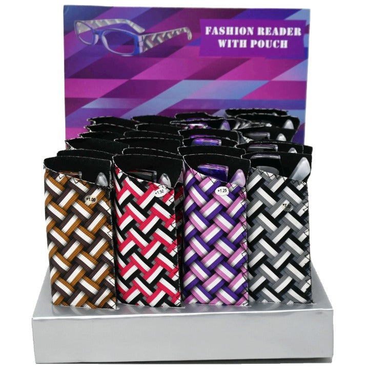 Wholesale 24 Asst Reading Glasses with Case (12 Asst power strengths 1.25-3.25 2 each in 24pc Inner 9"x9" Displayer) Readers (No UPC) C/P 288