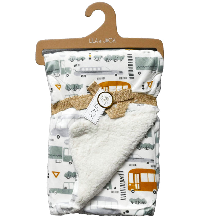 Wholesale 30x40" Transportation Printed Mink wNatural Sherpa Backing Throw C/P 48