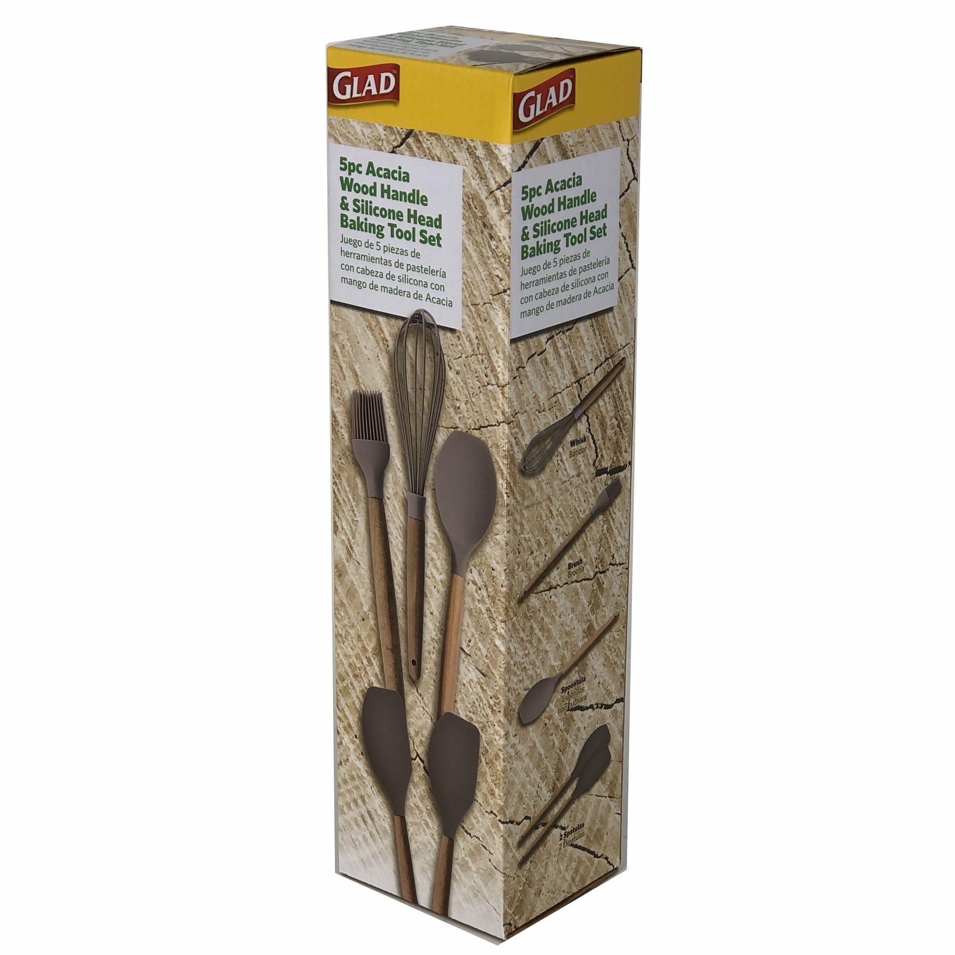Wholesale 5pc GLAD ACACIA WOOD BAKING TOOLS W/SILICONE HEAD C/P 6
