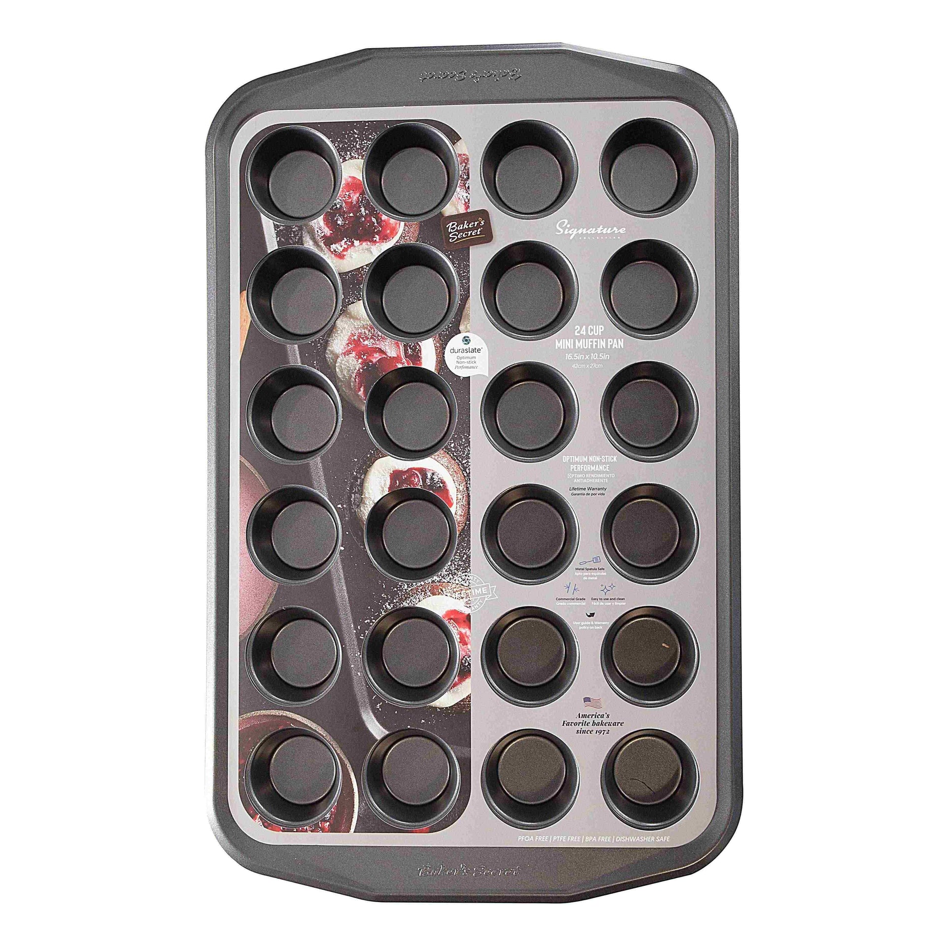 Wholesale Baker's Secret Signature Collection 24 cup mini cupcake pan,42.7x27.3x2.5cm,0.5mm, COATING: DURA SLATE GMM-7800R-7M137 (Dark Grey), Color Label, packing 6