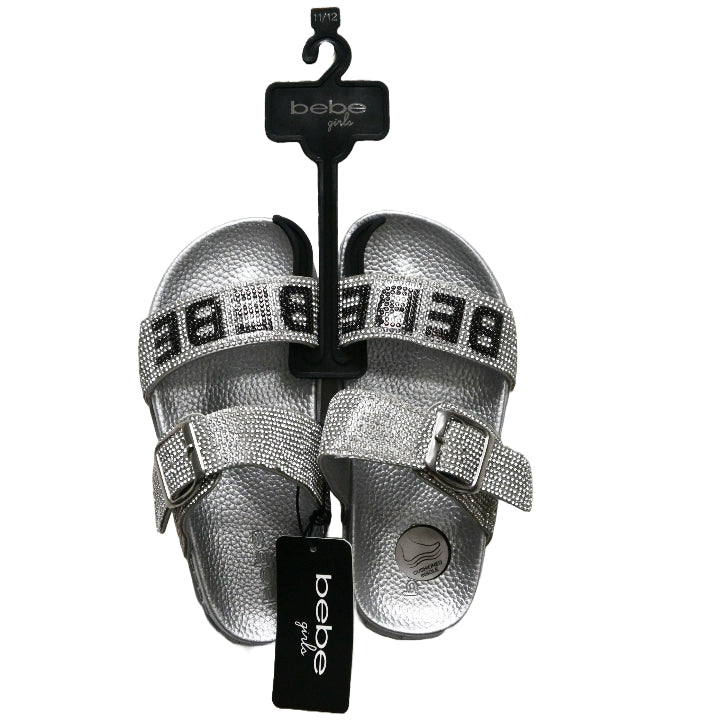 Wholesale BEBE GIRLS SILVER PCU POOL SLIDE SANDALS W/RHINESTONE DETAIL, SIZE (11/12, 13/1, 2/3, 4/5 - RATIO: 1,2,2,1) C/P 12