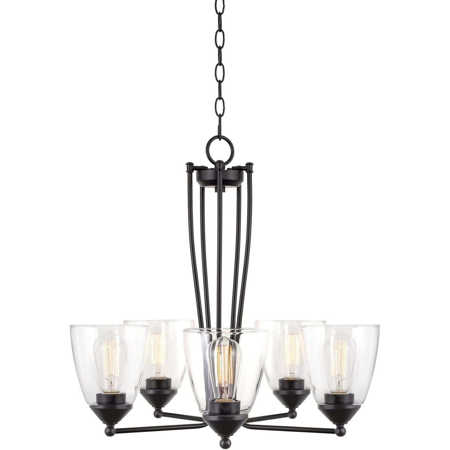 Wholesale Charleston 24" 5-Light Modern Industrial Chandelier + Clear Bell Glass Shades, Classic Black Finish