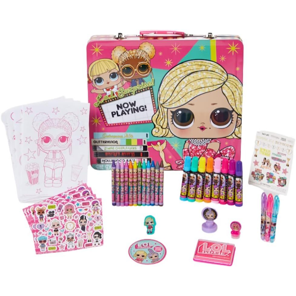Wholesale LOL 200PC TIN STATIONERY SET (TIN CARRY CASE, 4 COLORING SHEETS, 168 STICKERS, 22 TATTOOS, 12 CRAYONS, 8 MARKERS, 3 GEL PENS, GIANT STAMPER, STAMPER AND MORE ITEMS) C/P 12
