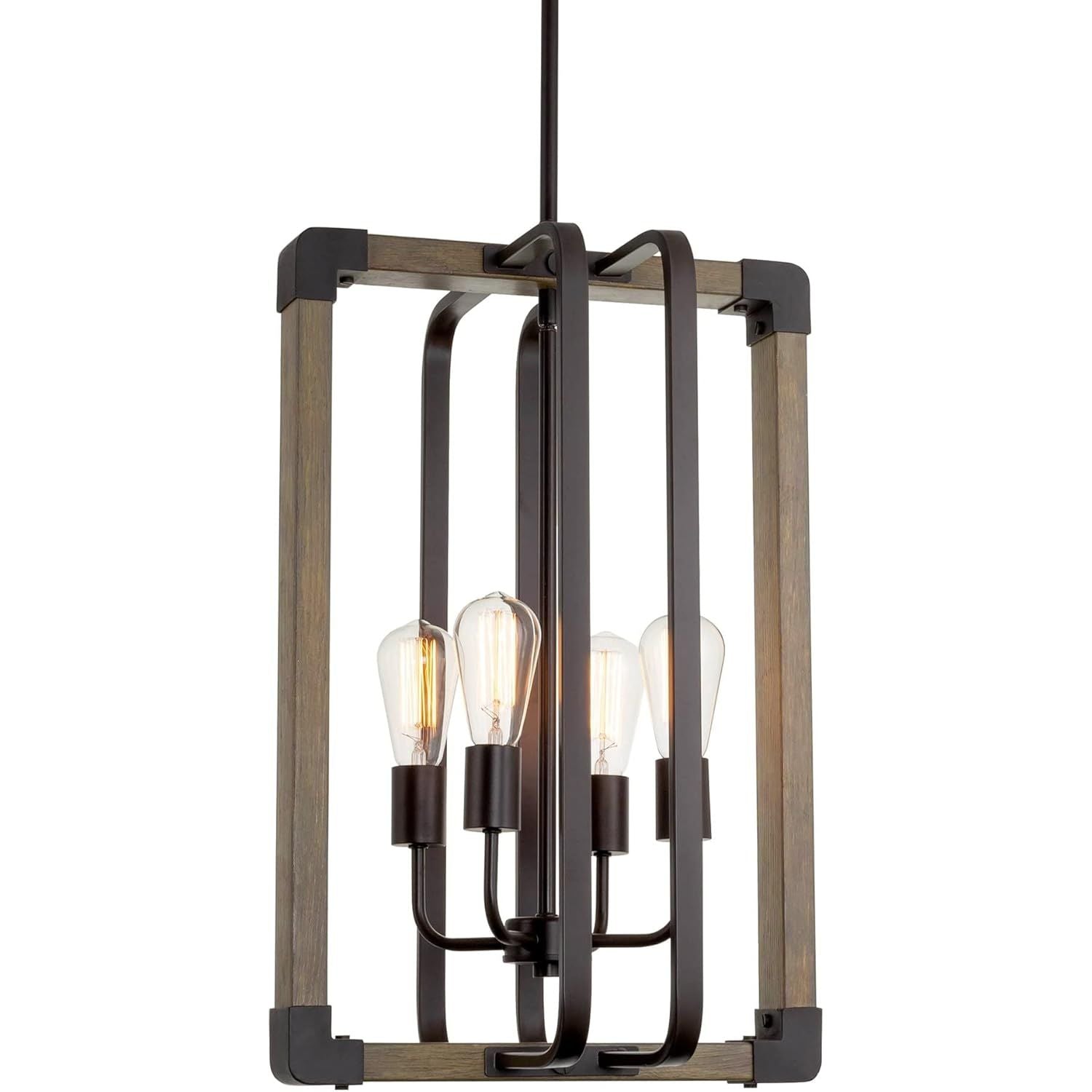 Wholesale Lorenzo 25" 4-Light Modern Farmhouse Ceiling Pendant Light, Open Design, Hickory Wood Style + Oil Rubbed Bronze Finish