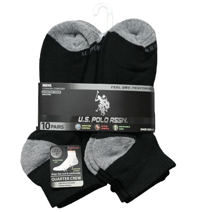 Wholesale US POLO ASSN MENS 10PK QTR CREW CUSHION SIZE 6-12 BLACK KHAKI CUSHION C/P 48