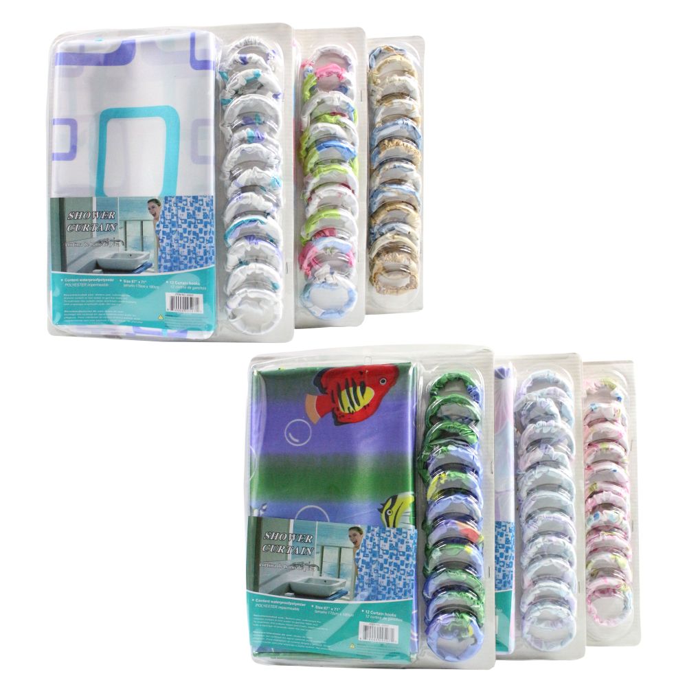 Wholesale SHOWER CURTAIN 67X71" W/HOOK 6 ASSTD